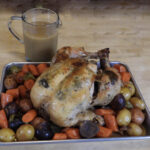 Fall off the bone roast chicken surrounded by tender vegetables cooked in the traditional French way.
